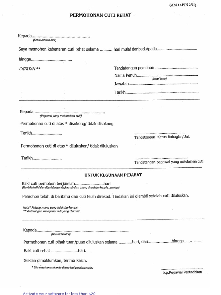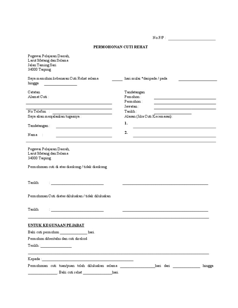 Borang Permohonan Cuti Rehat Pdf