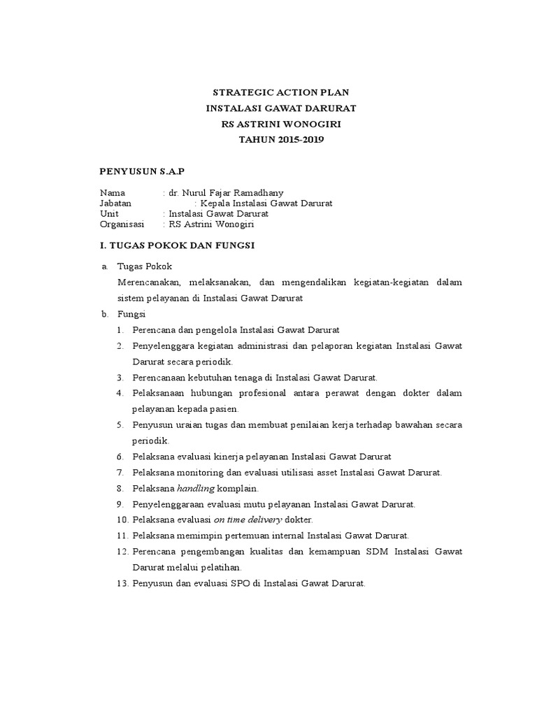 Strategic Action Plan Instalasi Gawat Darurat Astrini Pdf
